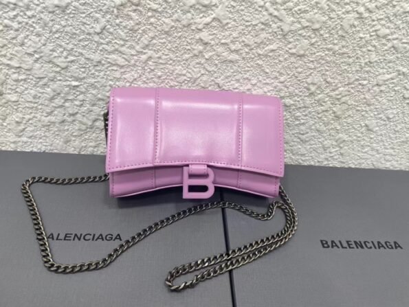 Balenciaga Hourglass Glitter Wallet Chain Pink