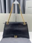 Balenciaga Hourglass XS. Bold curves, luxe croc-effect leather. Top handle & crossbody strap. Magnetic closure, int. zip pocket. Made in Italy.