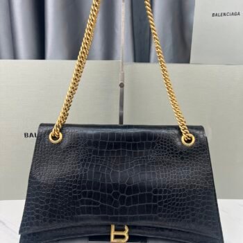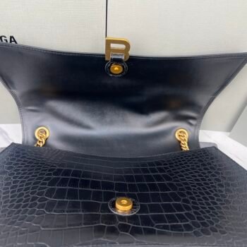 Balenciaga Hourglass XS. Bold curves, luxe croc-effect leather. Top handle & crossbody strap. Magnetic closure, int. zip pocket. Made in Italy.
