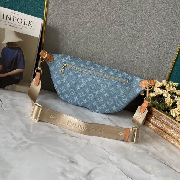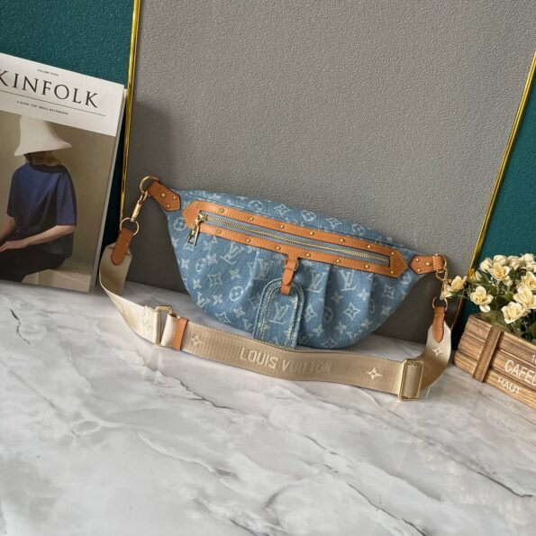 Introducing the 2024 Denim M46837 in the official new color denim, an imitation of the original version. This casually chic high-rise bag is crafted from Monogram coated canvas and features details like a removable name tag on the natural cowhide leather. The removable textile strap adds a sporty touch. The soft canvas feels comfortable against the body, while the ultra-thin design allows it to be worn under outerwear.