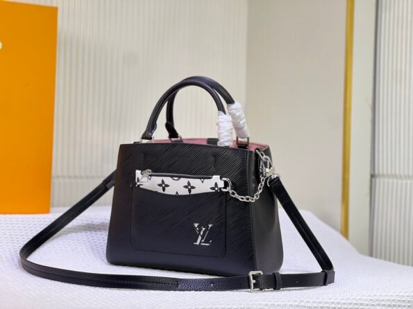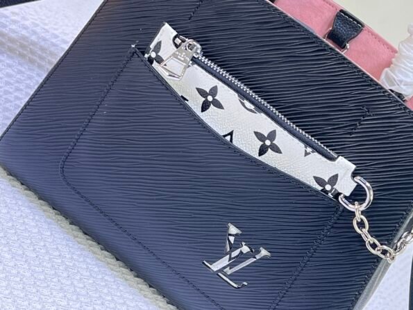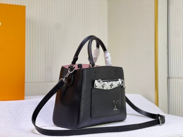 The Marelle Tote MM in grained Epi leather is designed for fashionable, active women, blending function with style. With sleek lines and signature details like a detachable Monogram pocket, see-through LV logo, and Toron top handles, this sporty-chic bag is a versatile companion for day-to-business use. The removable leather strap allows for hands-free, cross-body wear.
