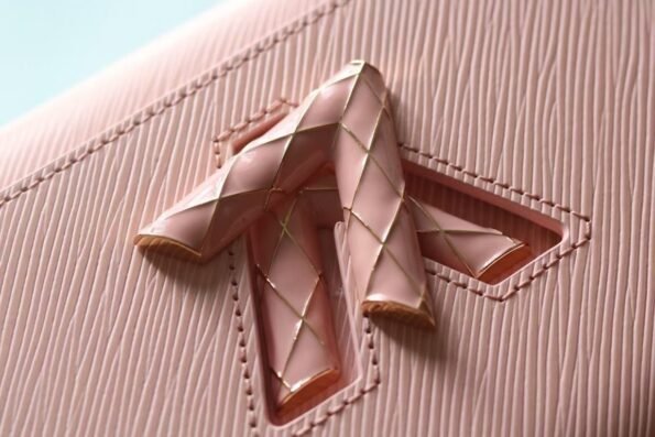 The Twist PM handbag exudes style in pink Epi leather, featuring an LV Twist lock finished in tone-on-tone enamel with a quilted effect, reminiscent of the quilting inside Louis Vuitton trunks. Surprisingly spacious due to its “wave” base, this elegantly crafted bag is an ideal day-to-evening companion. The chain, braided with leather, includes a shoulder pad for comfortable carrying.